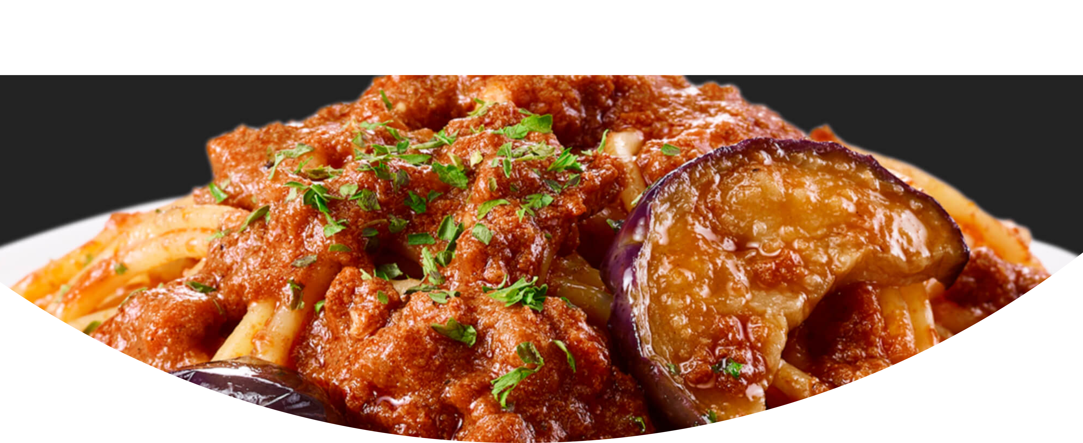 じっくり煮込んだ牛肉とトマトのうまみをきかせた濃厚なソースに、アルデンテ食感にゆで上げた麺をあわせたボロネーゼスパゲティ。揚げなす入り。