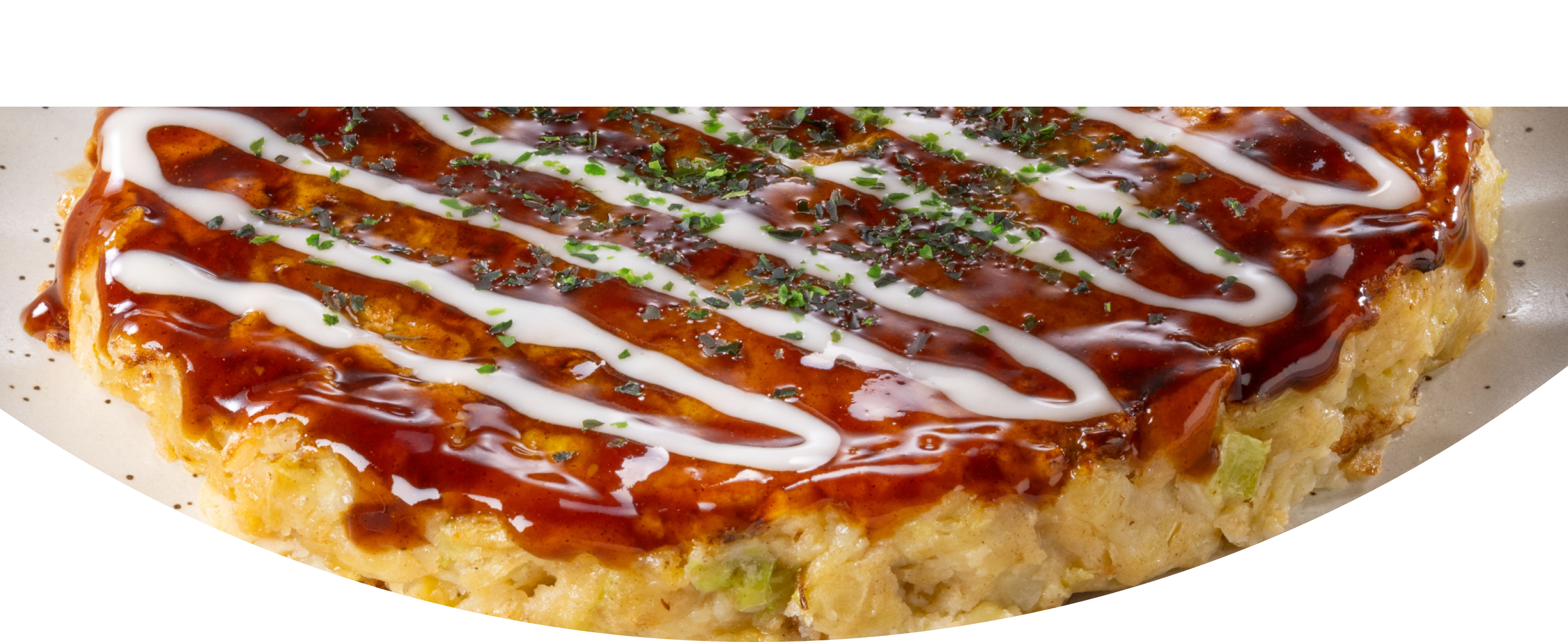 鰹だしの旨みをきかせた、ふっくらぶ厚い生地が特徴の関西風お好み焼ぶた玉。別添「ソース」、「マヨネーズ風ソース」、「あおさ」付き。